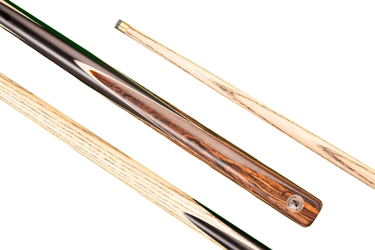 The Britannia Apex One Piece Traditional Cue is a masterpiece of craftsmanship, part of the esteemed Britannia Traditional cue range. This cue features eight exquisite hand splices of black ebony, bocote, and natural sycamore veneers, carefully crafted over the finest straight-grained, air-seasoned North American ash. The ash shaft is meticulously selected for its grain pattern, ensuring 3 to 10 well-shaped arrows on the same face as the butt flat, offering both aesthetic appeal and optimal performance.