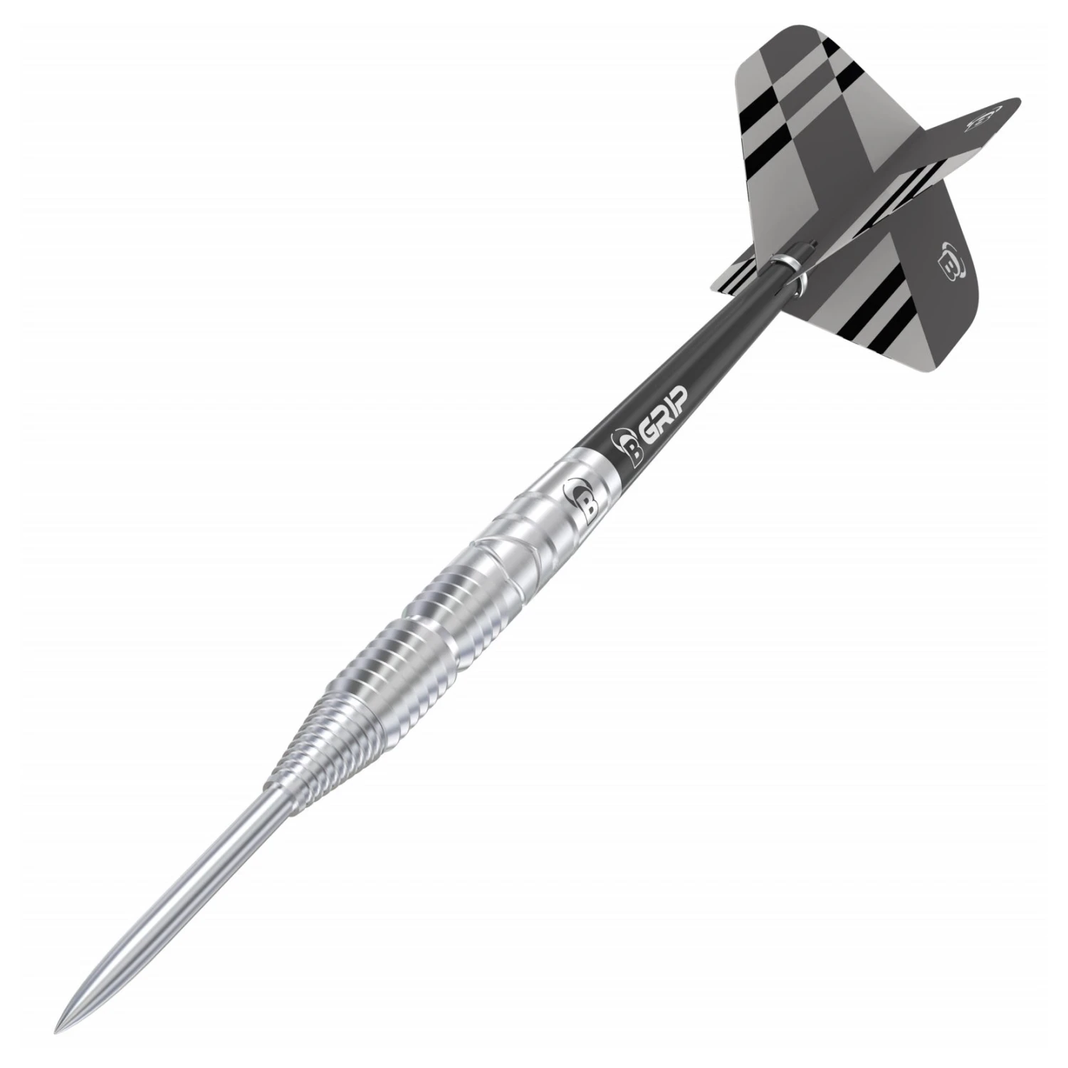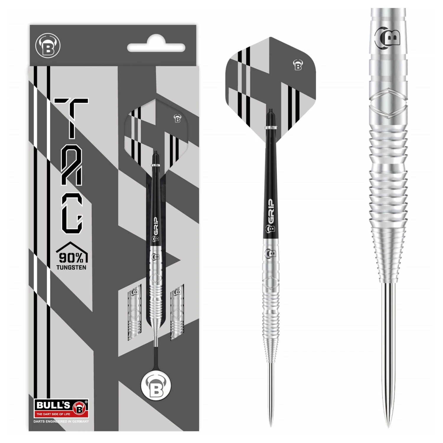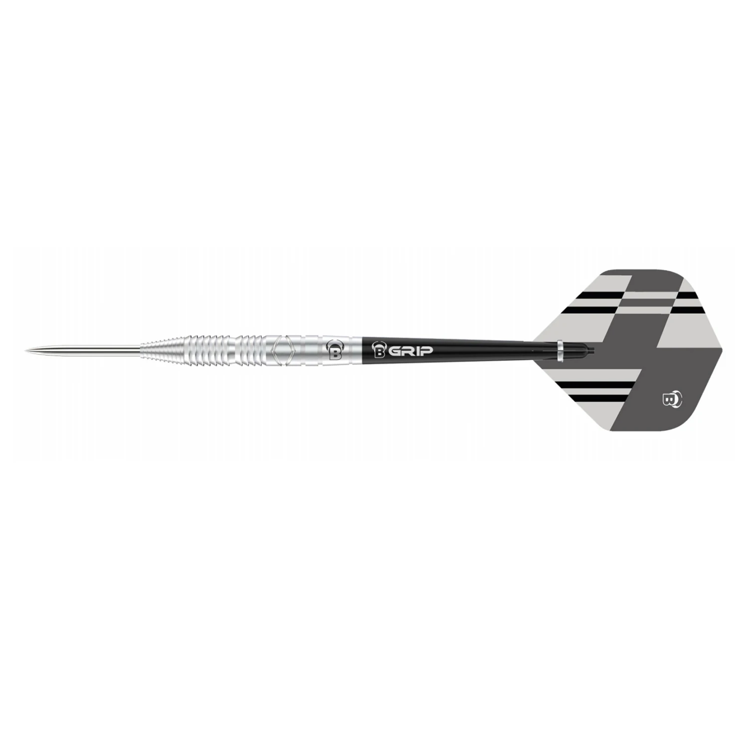 The TAC series is characterized by its striking barrel shapes, offering a wide range of gripping options. A defining feature of all barrels in the series is the slim taper towards the tip. The T3 features a torpedo shape with multiple grip zones distributed across the barrel. A small recessed grip area in the center provides extra hold. Made from 90% tungsten, the T3 is available in 21g, 23g, and 25g weights, offering dart players maximum precision and control.