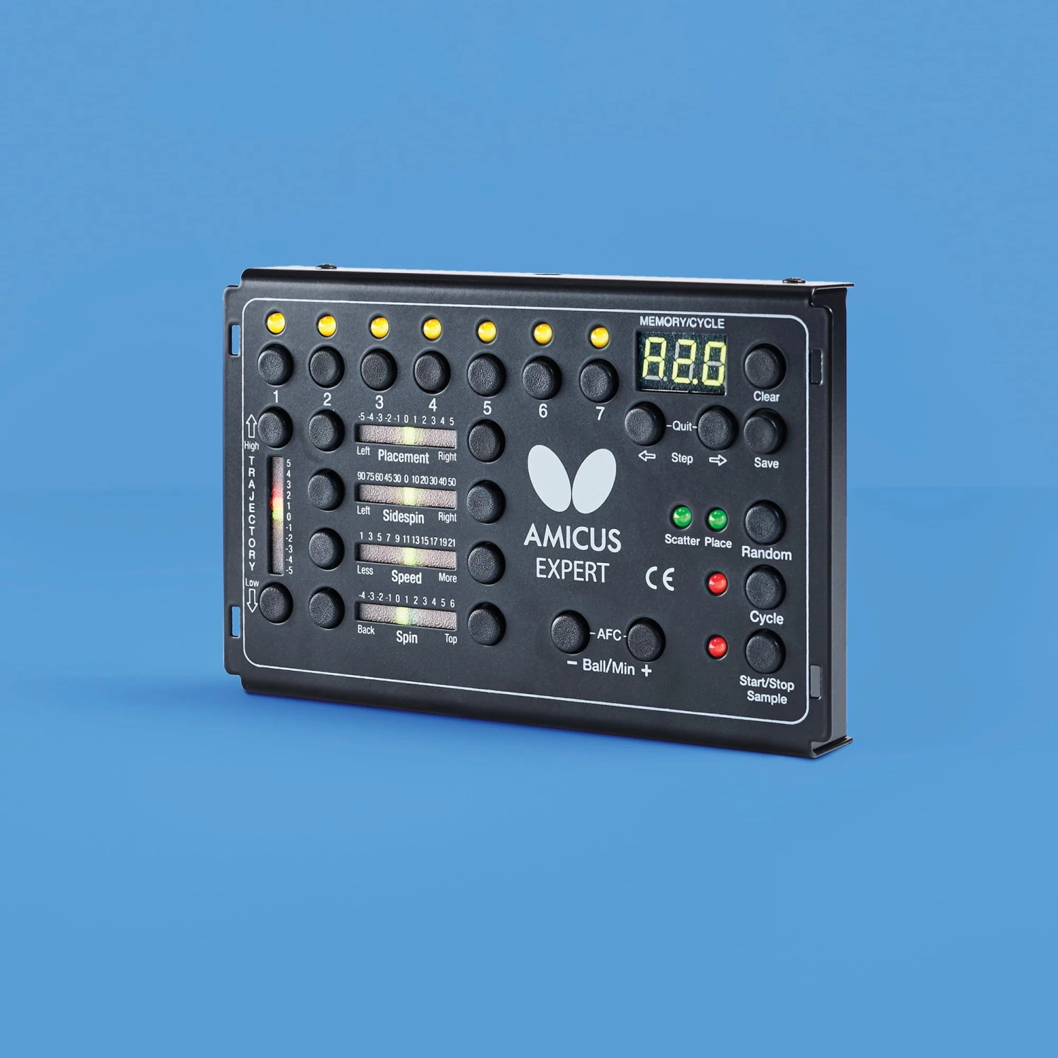 Butterfly Amicus Expert Table Tennis Robot – The new AMICUS EXPERT combines the skills of both predecessors ADVANCE and PROFESSIONAL. With 99 memory slots, up to seven individual balls per exercise and precise control over trajectory, placement, speed and spin of each ball.
