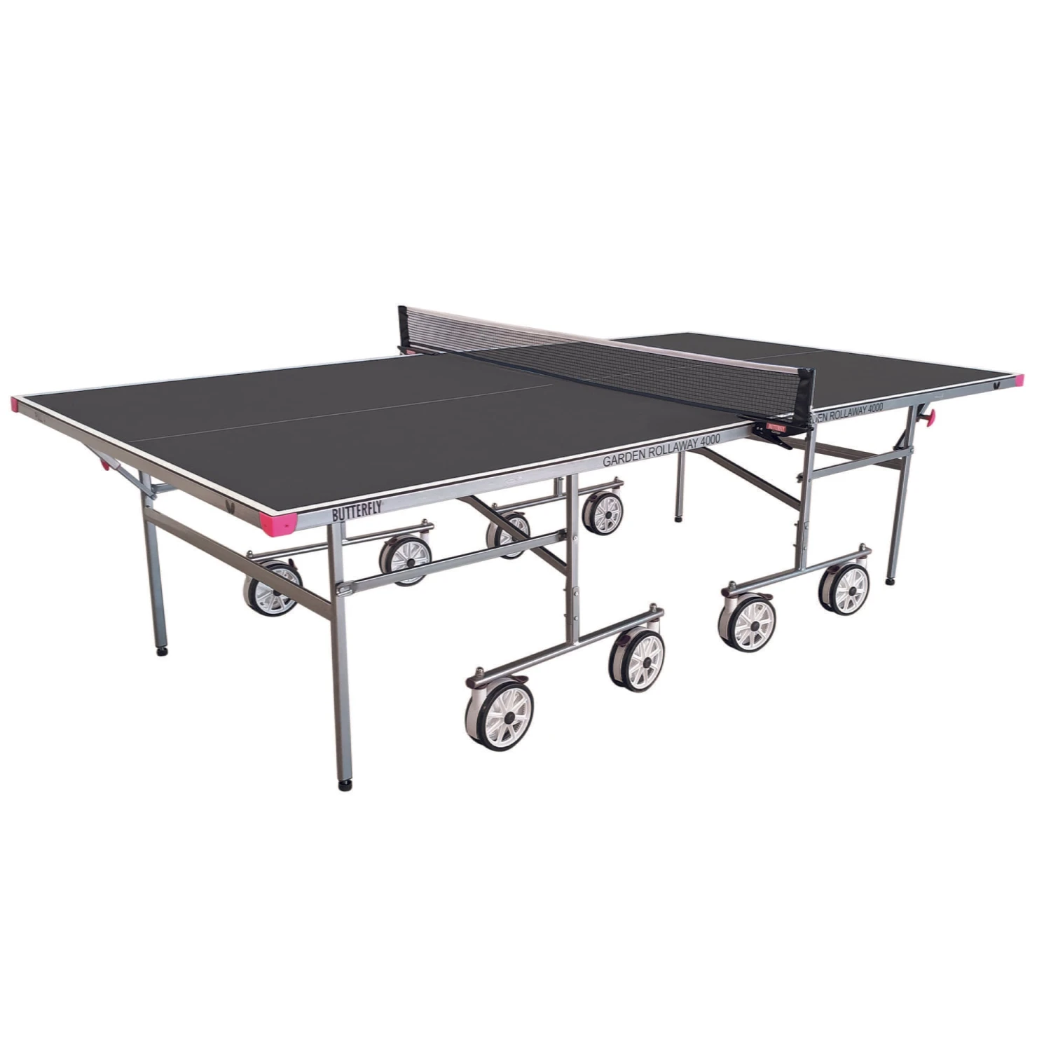 Butterfly Garden Rollaway 4000 Outdoor Table Tennis Table – The Butterfly Garden Rollaway 4000 incorporates a 5mm melamine playing top. This top combined with a strong 8-wheel undercarriage is the quickest and easiest system for setting up a table. The Butterfly Garden Rollaway 4000 comes with a clip net and post set and is ideal for the home and gardens.