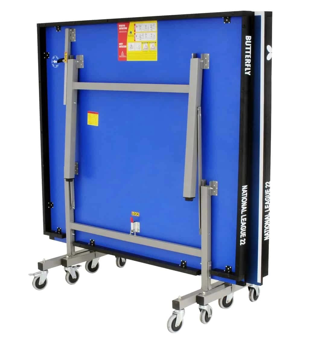 Butterfly National League 22 Blue Rollaway Table tennis table – A 22mm Butterfly match top and is combined with the 8 wheel system which provides economic storage and lighter rollaway benefits. This is the ideal table for sports centres, schools and clubs that need a match table at a great price.