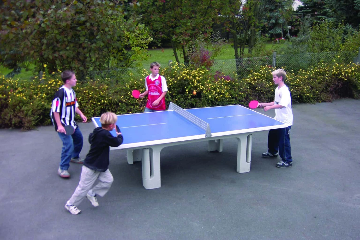 The key benefit of the Butterfly Polymer tables is the playing surface. Being made from polymer this ensures that the playing surface stays intact and does not weather over time. Tables which use just concrete can end up losing parts of their surface, as the concrete slowly weathers away. This causes very unregular bounce and makes playing a decent game very tricky. The Butterfly polymer concrete tables are specially designed to prevent this happening, and as a result are guaranteed for 5 full years, which no other table offers. Also the table markings are actually moulded into the table, so they don’t get scrubbed off or damaged due to weather conditions or extended play.