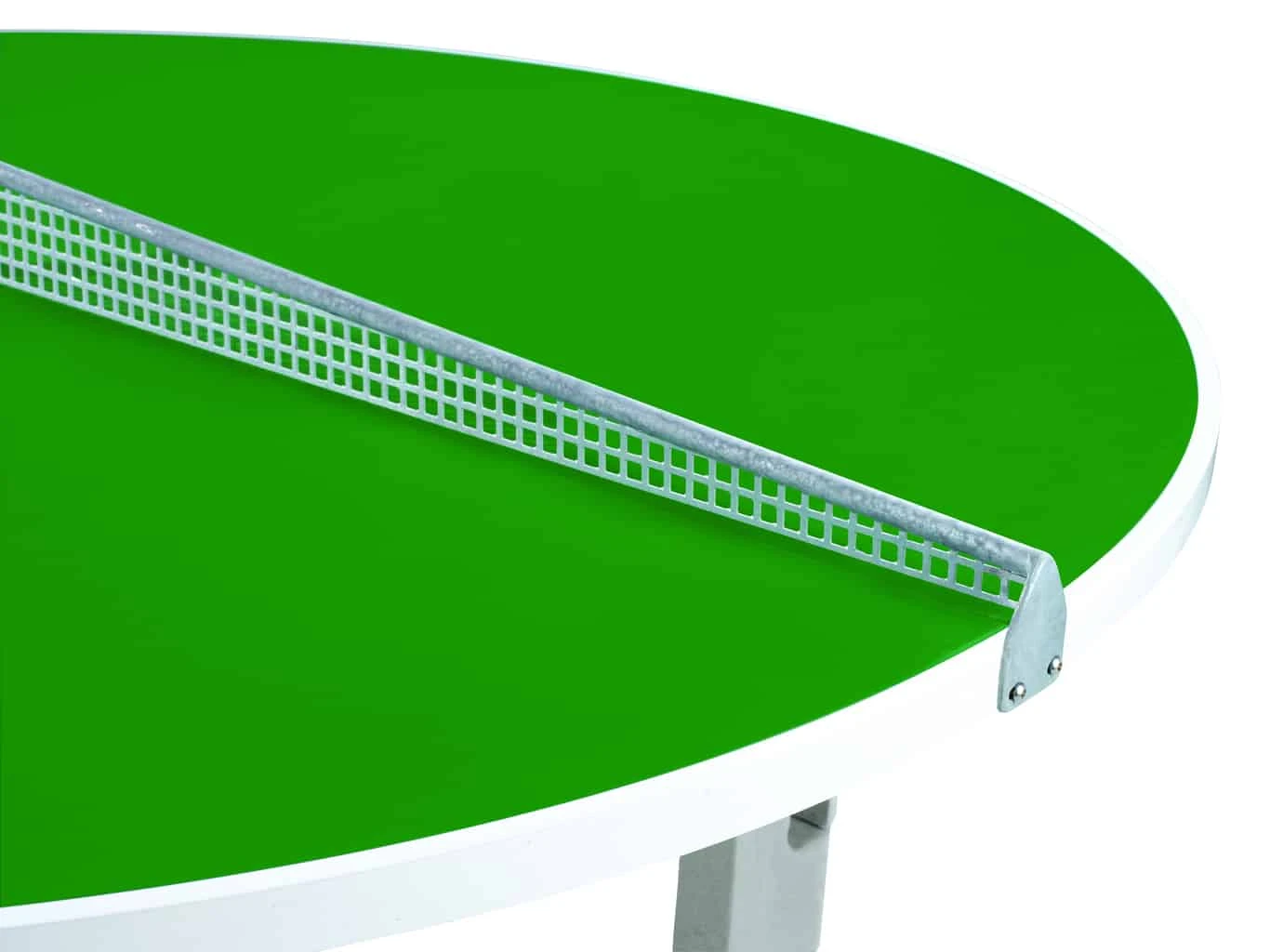 Butterfly R2000 Green Polymer Concrete Round Table – An interesting new style of table tennis table. This table allows 2 games of singles or doubles to take place at the same time. Unique round shape with a 25mm reinforced playing top together with a net and post set which covers the centre of the table in 2 directions.