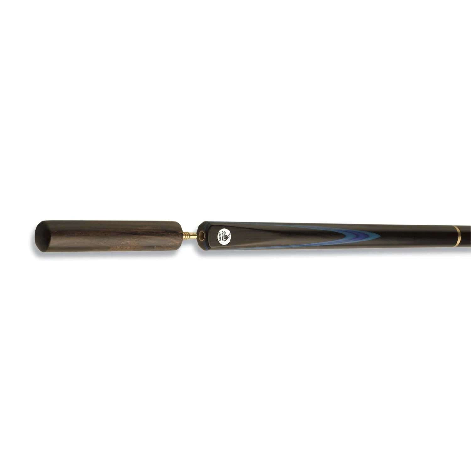 Cannon Grande 3 Quarter Jointed Snooker Cue with Mini-Butt – Manufactured from sports grade ash wood which is further selected to offer superb value for money. The genuine ebony butt is hand spliced to the ash shaft and an ebony front splice with mid-blue and blue veneers is then spliced to the butt section to further enhance the appearance. The brass ‘Cannon’ joint is fitted 14” from the butt of the cue.