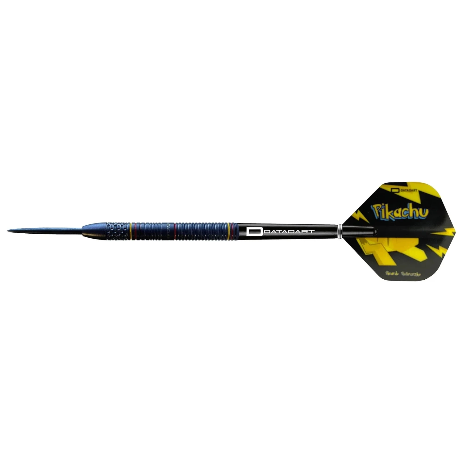 Ricardo Pietreczko Pikachu Darts feature a straight barrel with Radial grooves and parallel cross cuts at the front of the Barrel enhancing your grip. The dart is finished with a Black PVD coating and coloured rings to the front and rear, the Datadart logo is laser etched on the center of the barrel.