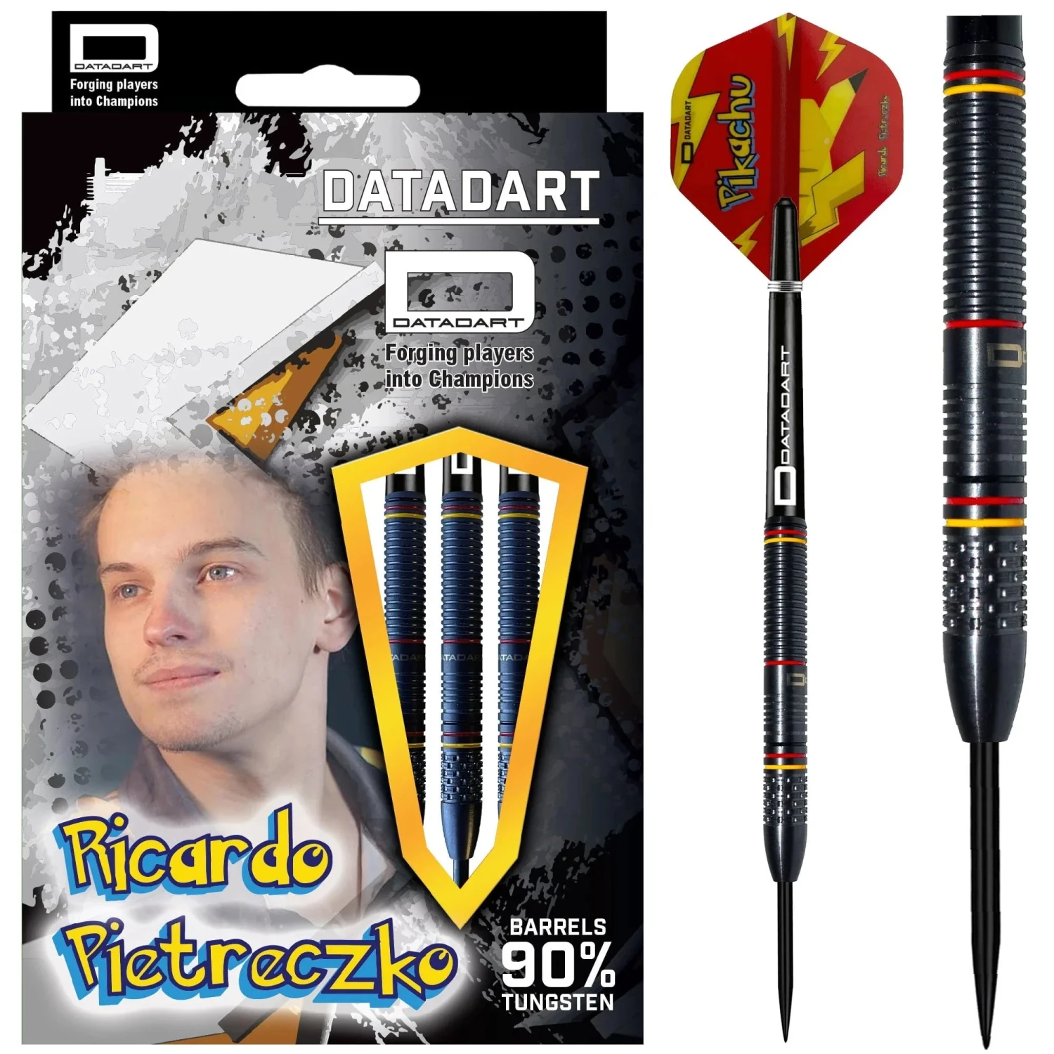 Datadart Ricardo Pietreczko Pikachu 23g Steel Tip Darts – “Datadart are delighted to add Ricardo to the team, we feel he has the ability and the temperament to hit the top of the dart world. Ricardo secured his tour card at the PDC EU Q-School 2022.”