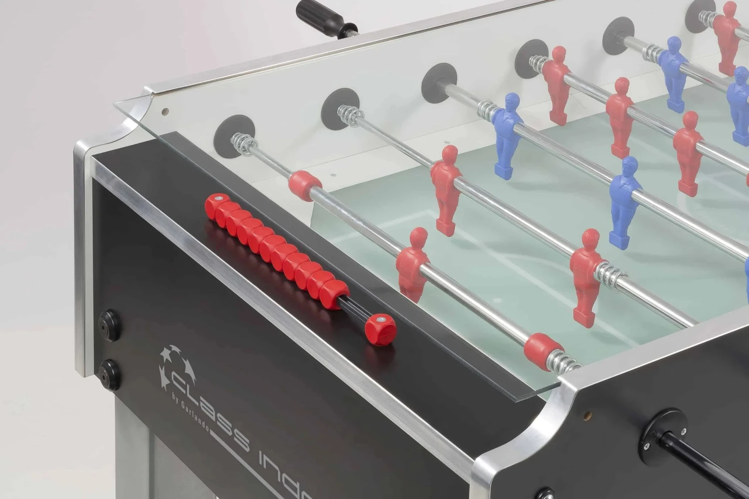 The benefit of the table having a glass top is that the balls never leave the table. They are fed into the table through a ball safety cage. This means that the balls cannot be lost or stolen. The glass top also ensures the playing pitch is kept in immaculate condition and the game is also a quieter than tables with an open top. This is an ideal table for offices and youth clubs.
