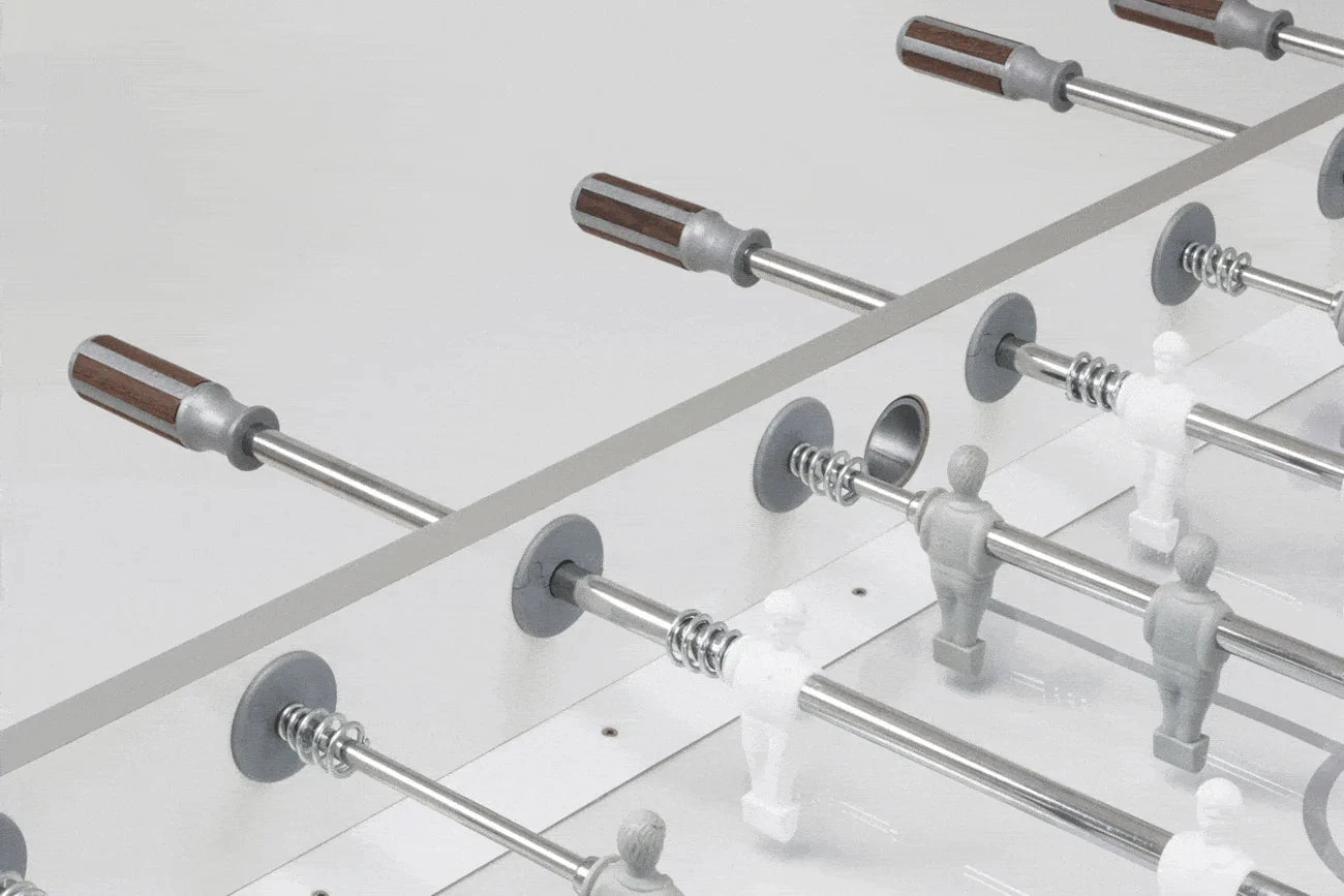 - Players: White/grey players in unbreakable plastic moulded onto the bars.