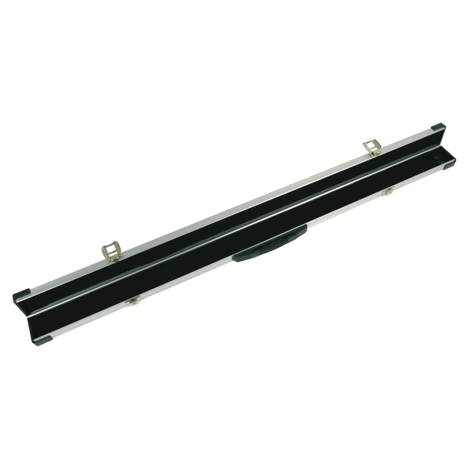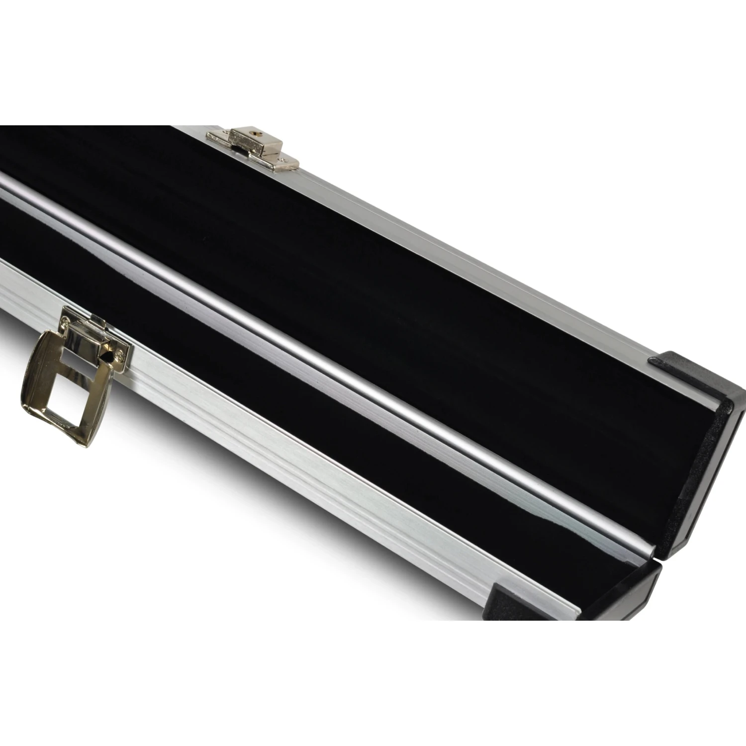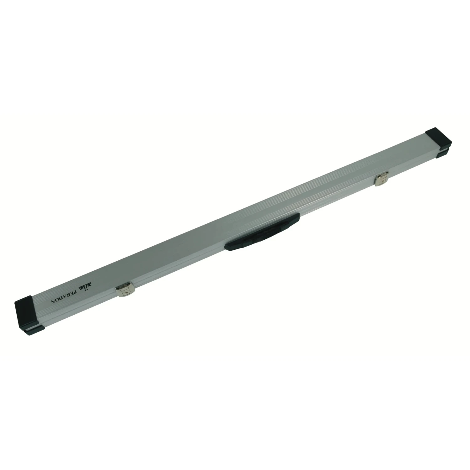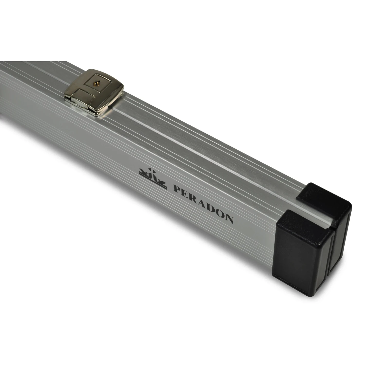 Peradon 3 Piece Aluminium Cue Case for ¾ Jointed Cues – A stylish, silver aluminium cue case for ¾ jointed cues, made from a lightweight but strong aluminium with tough plastic end caps. This case has two lockable catches and comes complete with two keys. Featuring a strong, semi-retractable handle, there are also two small compartments at the end of the case, each roughly the size of a cube of chalk.