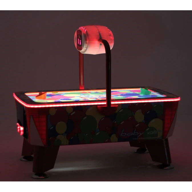 Mounted on shorter legs, with brightly decorated cabinet and illuminated playfield; the Baby Evo Air includes a deep, anti-flip puck rail for extra peace of mind and a bevelled rebound strip for an even more exciting game.