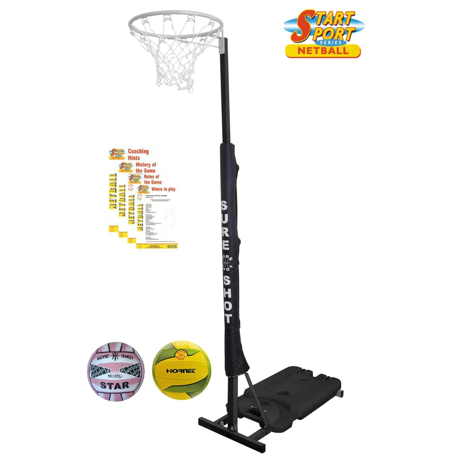 Sure Shot Start Sport Netball Set – A great way of introducing youngsters to sport – The Sure Shot Start Sport Netball set. A great way of introducing youngsters to the game of netball – including everything you need to play the game.