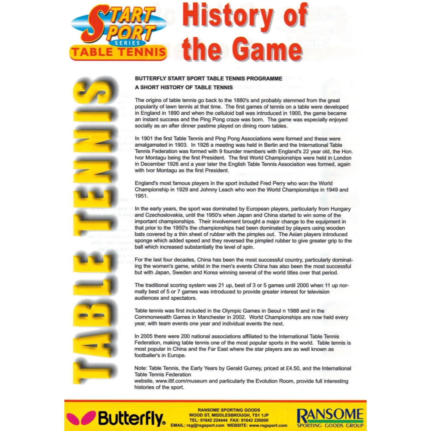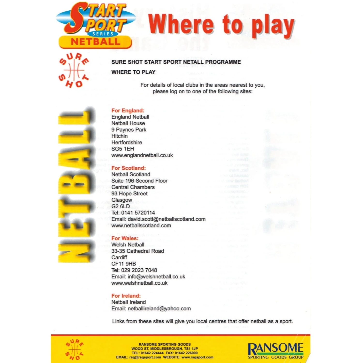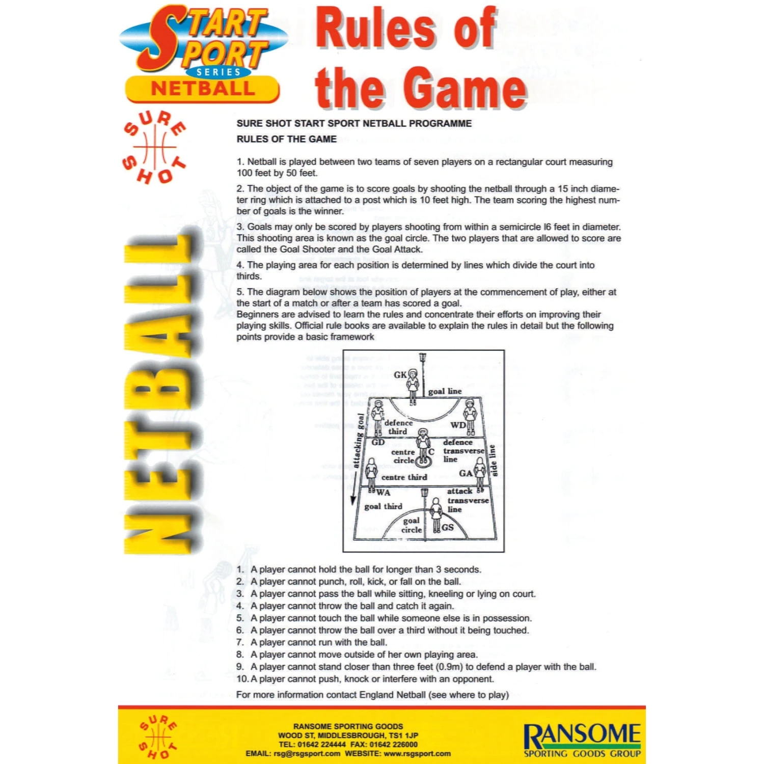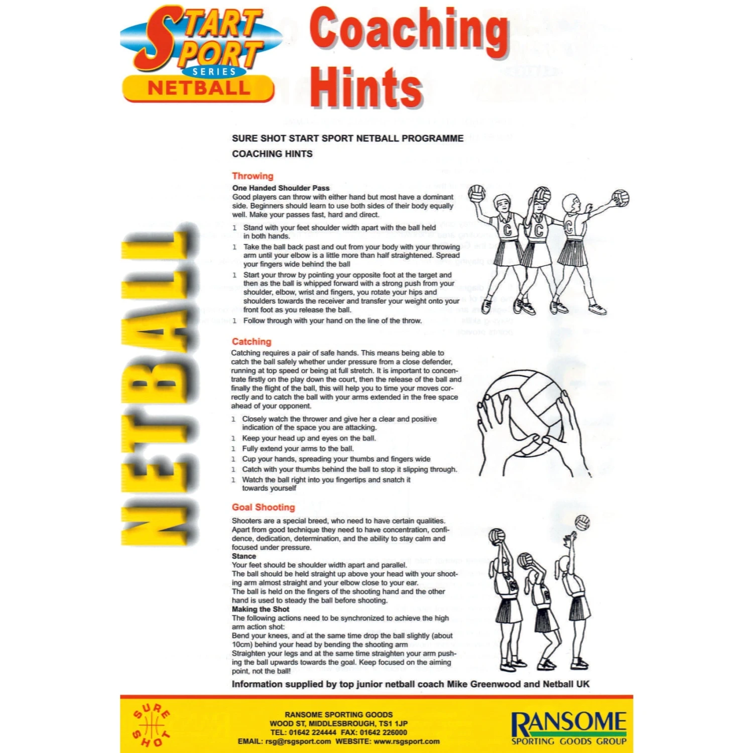 Includes information pack consisting of coaching hints, where to play, rules and history of the game produced in co-operation with Netball UK