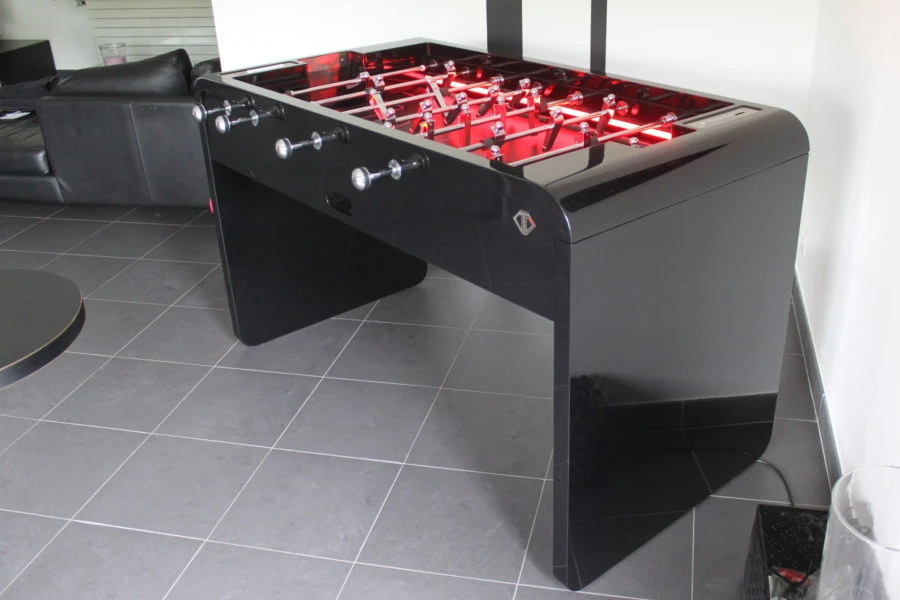 With striking lines and a fresh approach, the T22 adds a modern touch to any room. Chrome and aluminium players, serial numbered for exclusivity, reflect a contemporary aesthetic that complements the table’s design. Notably, players on this model are taller, allowing for head plays and increased scoring opportunities.