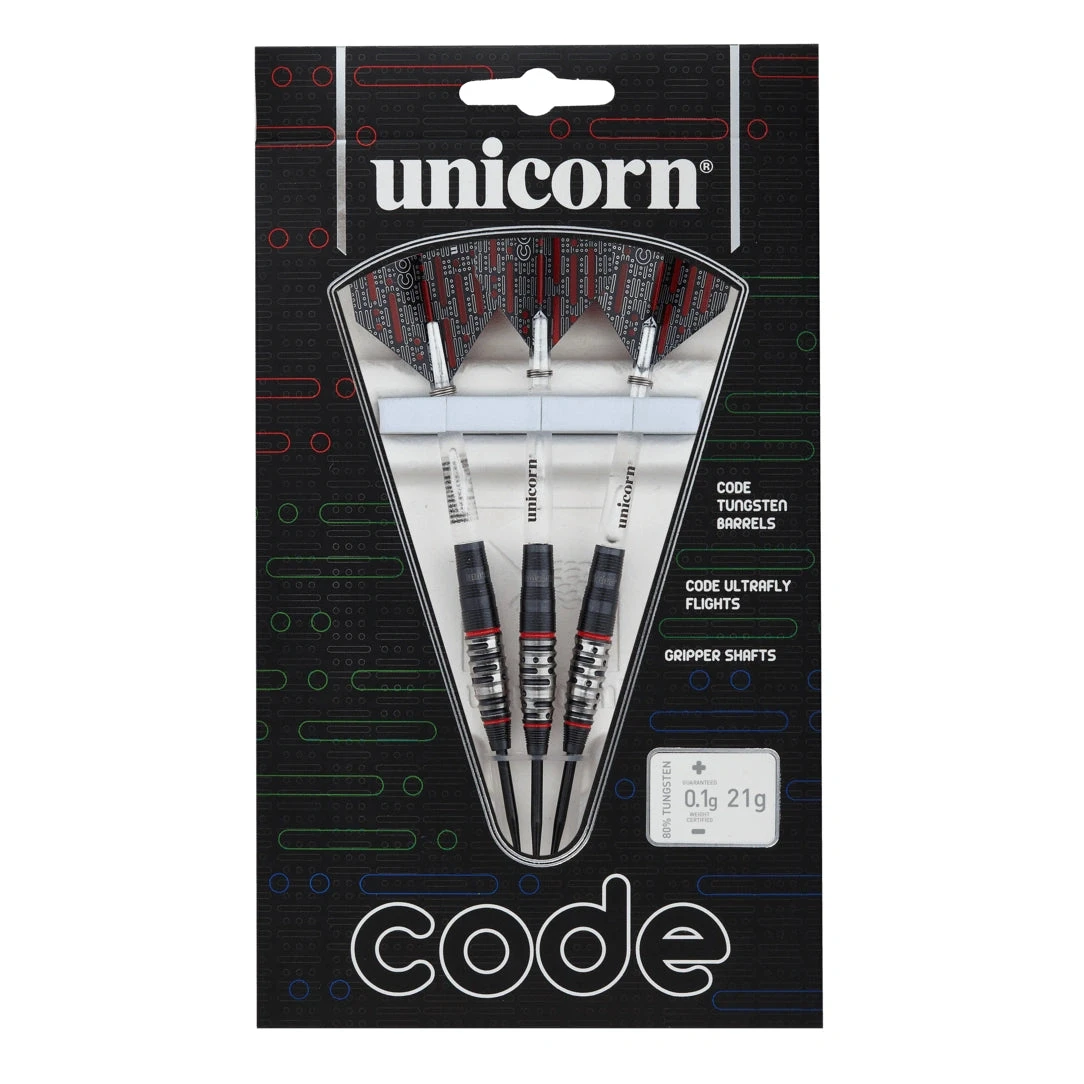 Unicorn Code Red 22g 80% Tungsten – Featuring Code Tungsten Barrels, Code Ultrafly Flights & Gripper Shafts.